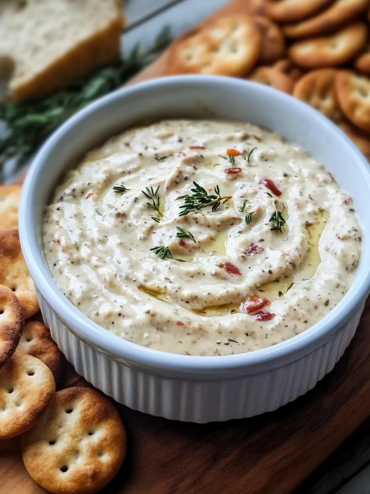 - Crispy Crackers: Classic pairing that adds a satisfying crunch while enhancing the dipโs creamy texture. Choose an assortment for variety!