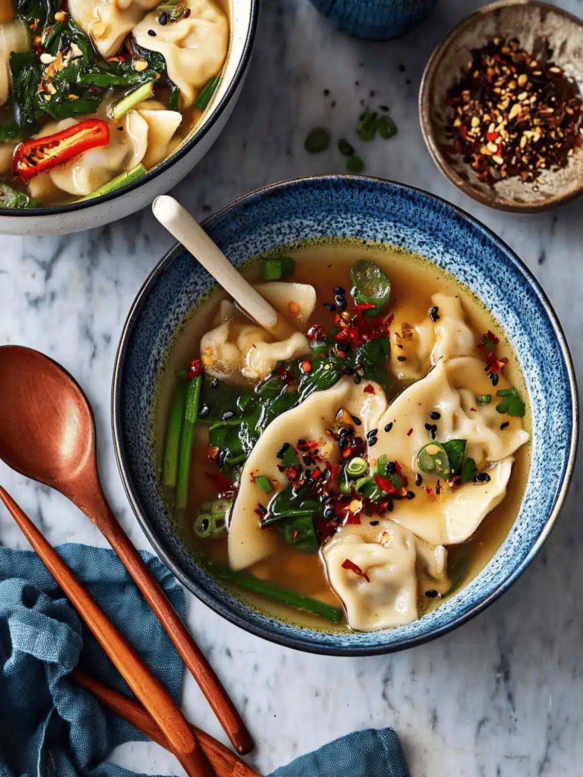 Choose Smaller Dumplings: Opt for mini wontons or smaller dumplings for easier eating and a more pleasant texture in your dumpling soup.