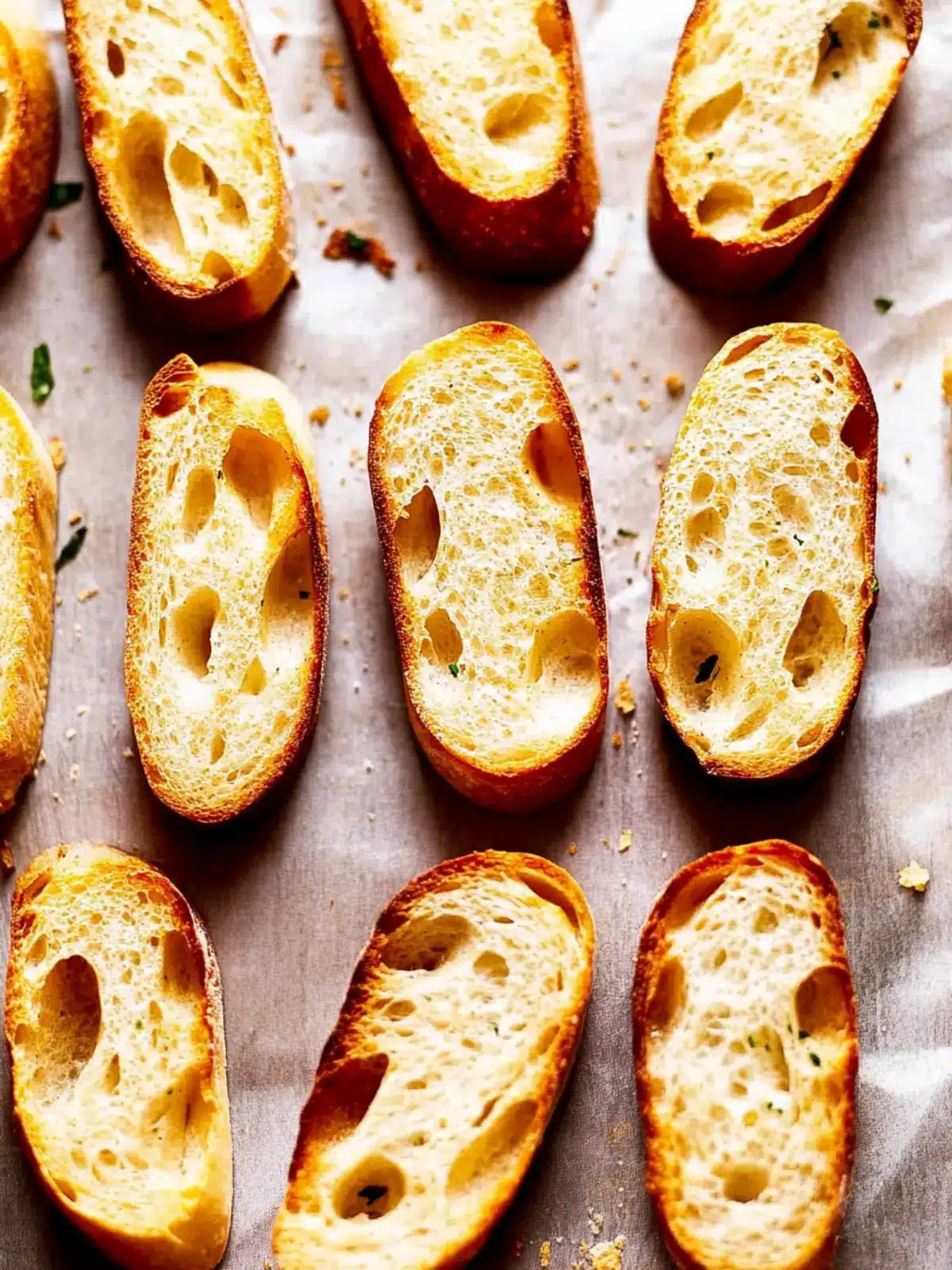 Slice Evenly: Cutting the baguette into uniform slices ensures that each piece toasts evenly, avoiding any soggy or burnt spots.