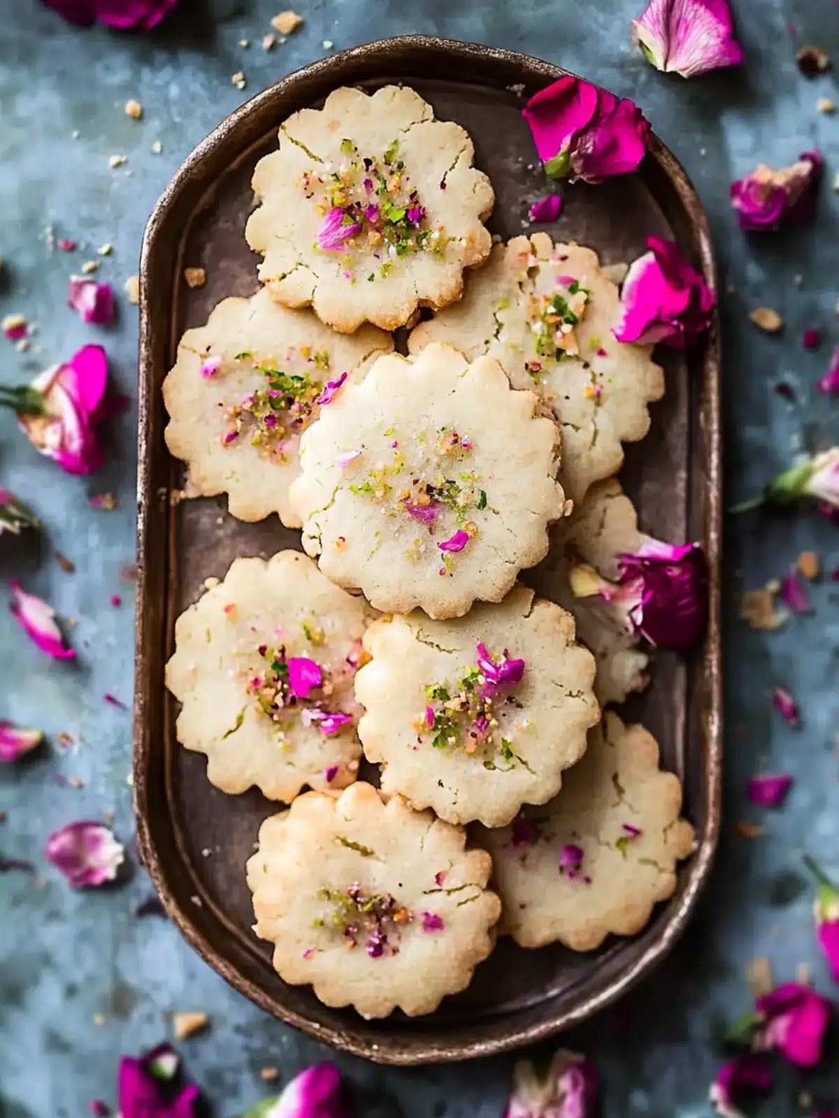 โข Chopped Pistachios and Dried Rose Petals โ Adds extra visual appeal and fragrance to the finished cookies.