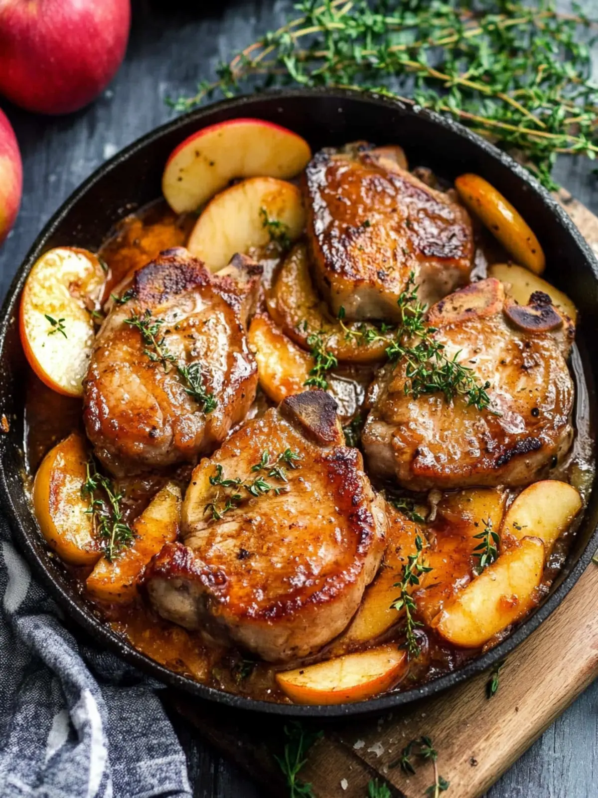 Savory-Sweet Harmony: The delightful contrast of juicy pork chops and sweet caramelized apples makes every bite a celebration of flavors.