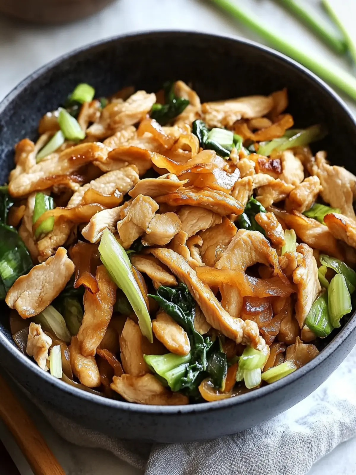 - Plate your Moo Shu Chicken and garnish with thinly sliced green onions. Serve immediately.