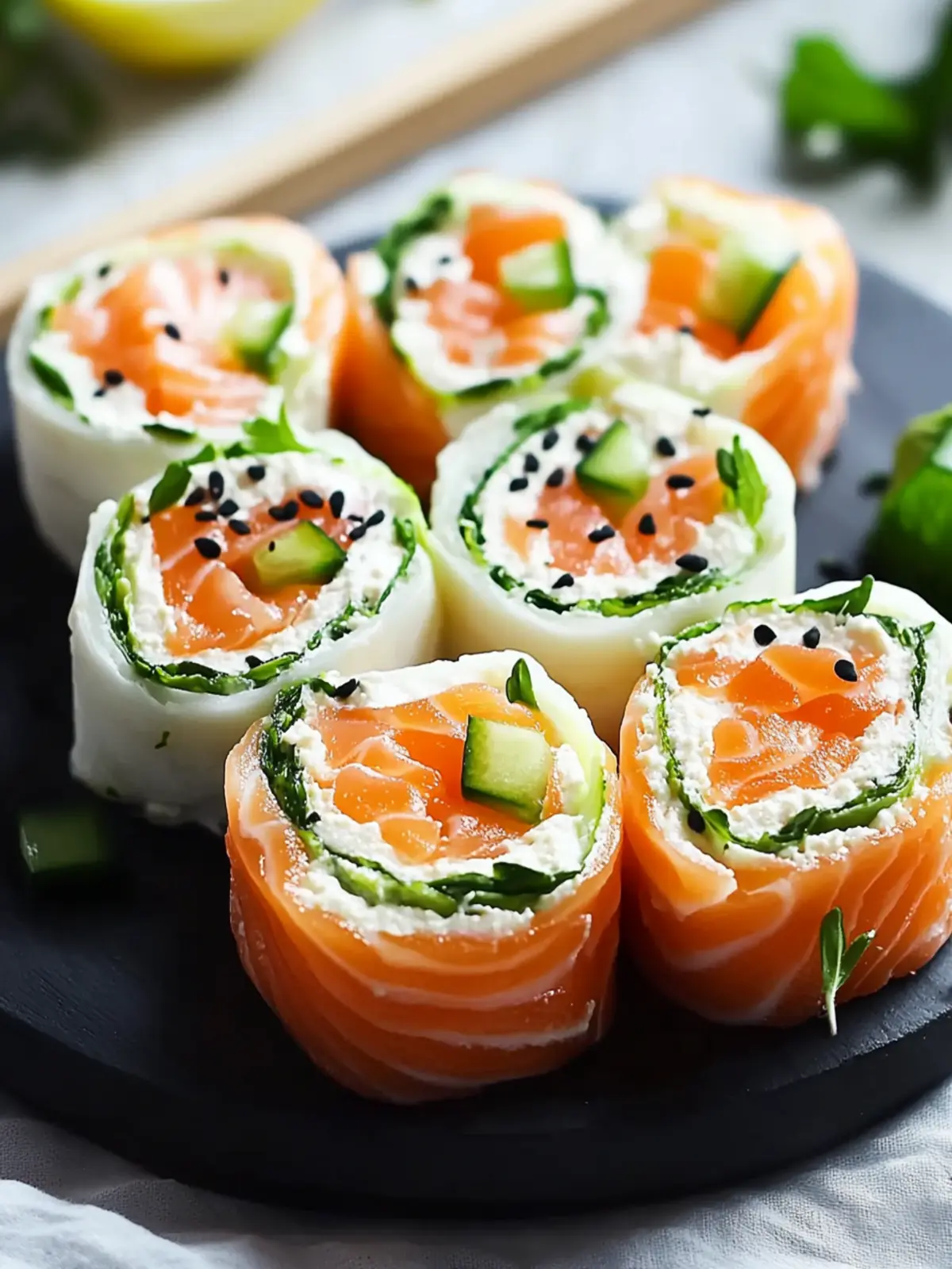 Imagine the rich, smoky flavor of salmon paired with the lightness of whipped cream cheese and the crisp bite of cucumber. These roll-ups are not only visually stunning but they also lend themselves to endless variationsโswap in delicious fillings like avocado or even mango for a twist. Perfect for entertaining or a quick afternoon treat, these roll-ups are sure to impress without the fuss. Letโs dive into this effortless recipe that promises a guilt-free indulgence any time of day!