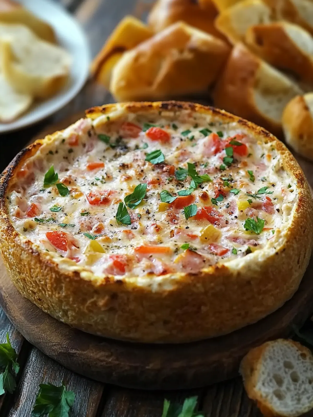 โข Baguette Slices, Crostini, or Crackers โ Ideal for dipping, offering delightful texture that complements the dip.